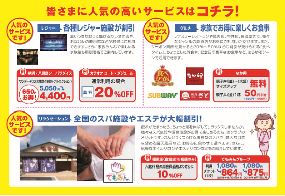 旅行やエンターテイメント、グルメ、スポーツなどのサービスが140万件以上優待割引で受けられます。