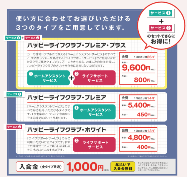 サービスの名前は「ハッピーライフクラブ」といい、3つのプランから選べるようになっています。