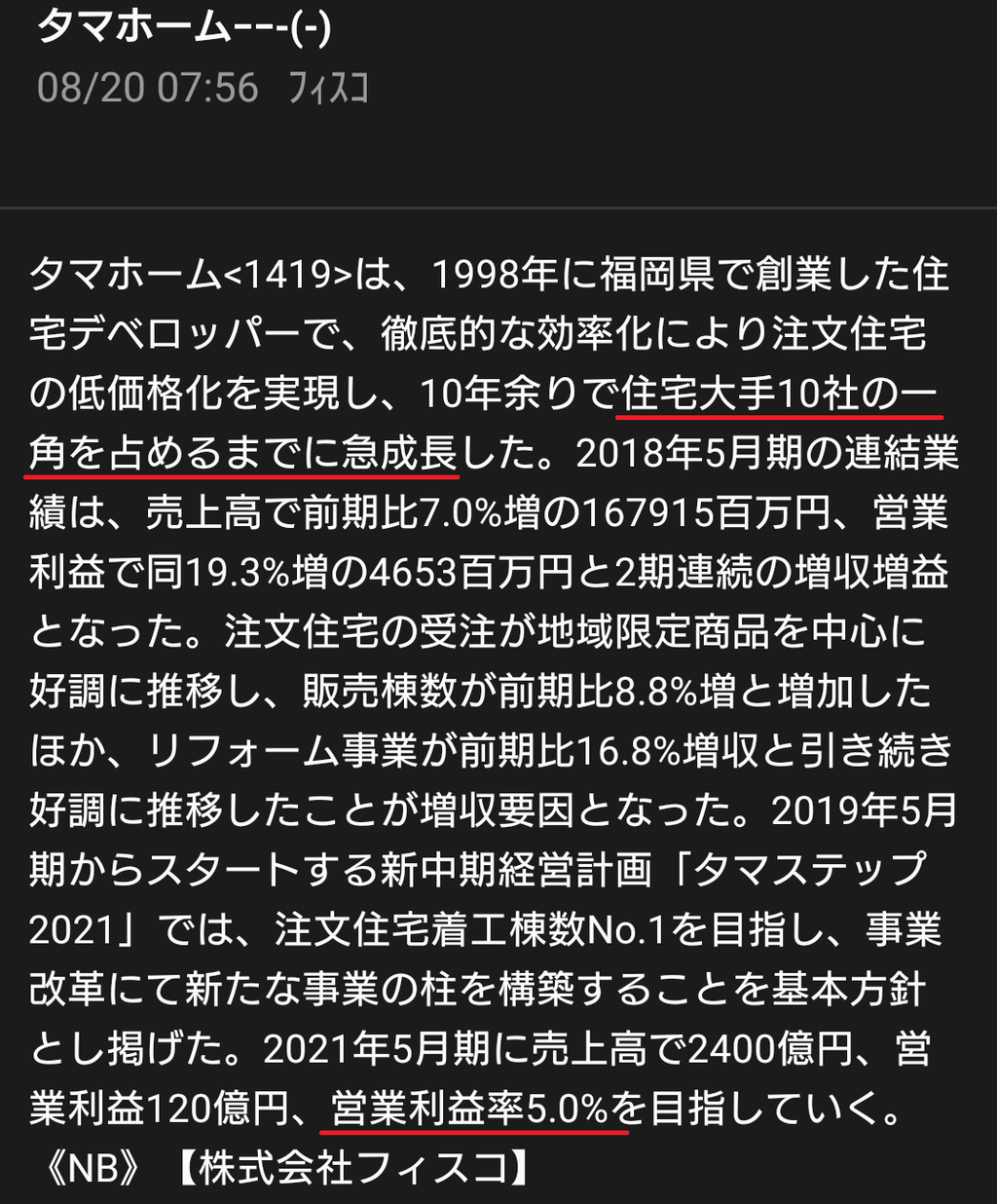 ちなみに大手の情報会社でも、タマホームは大手としてくくられることが多くなってきています。