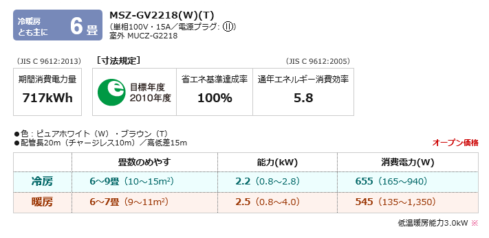 しかし、この表記(能力)の製品をそのまま自分の家の部屋の大きさに当てはめて設置するとほとんどの場合、スペック的に過大になります。