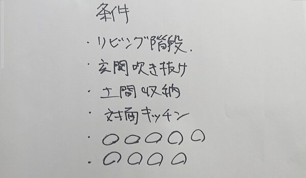 自分で考えるのはよくわからないという方は、これだけはという条件を箇条書きして伝えるだけでもOKです。