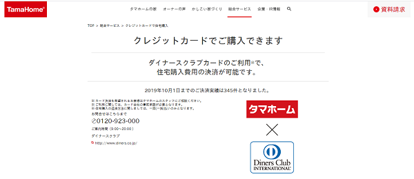 タマホームをクレジットカードで購入できるのはダイナースクラブカードです。