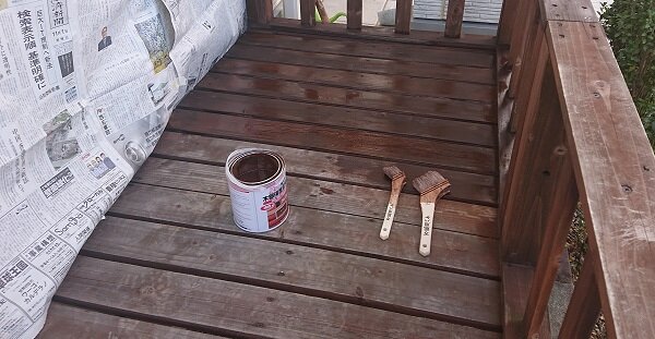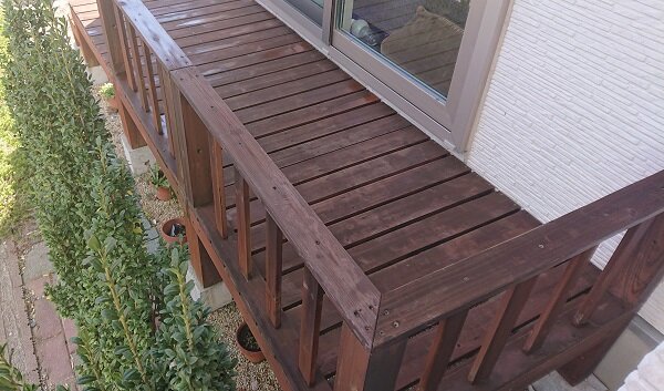 なので本来は木製ではない擬木のウッドデッキがいいかと思いますが、もう設置しているところについては、仕方がないので塗装をして少しでも長持ちするようにメンテナンスします。