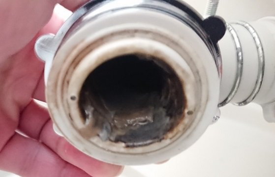排水トラップは、水が溜まるようになっていて、これによって悪臭の逆流を防いだり、虫の侵入を防ぐためのものですが、これがアダとなって排水スカム(ヘドロの塊)が詰まったという結論です。