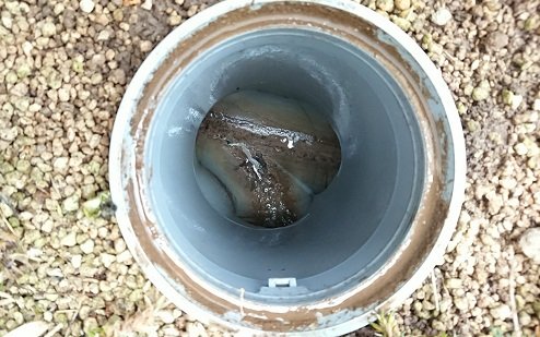 この時、念のための作業になりますが点検も兼ねて敷地内にある浄化槽の流入口とその先の排水管の流末まで確認しました。
