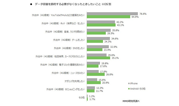 データを節約する必要がなければ外出中にyoutubeなどの動画が見たいと思う人が多いということです。