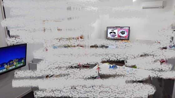 さすがに散らかりすぎていてブログのために掃除しようという気にはならなかったので隠してあります・・・。