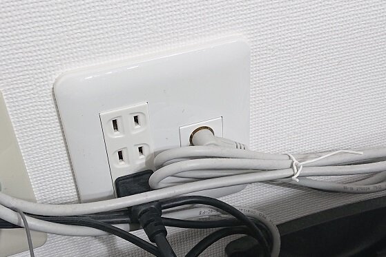 つまり、先ほど紹介した6口コンセントとこの3口+アンテナが1セットになってテレビ用として設置しています。
