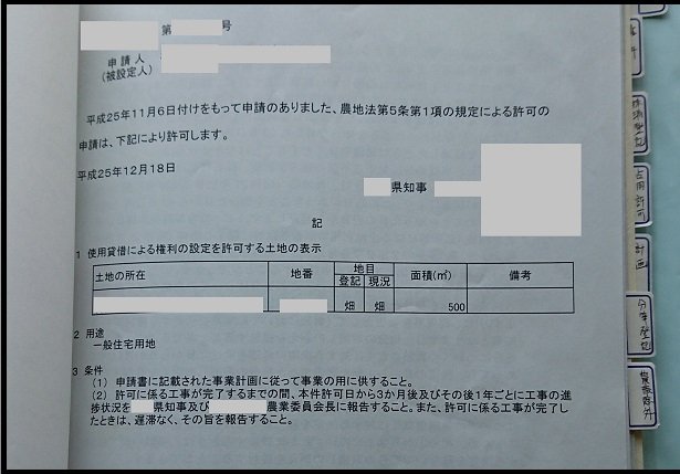 ということで、この転用の許可をもらったことで農振除外から農地転用まで1年以上に及んだ手続きが完了しましたのでした。